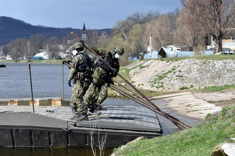 V dubnu vrcholí příprava pro vojáky 7.ÚU eFP, kteří se připravují k vyslání do zahraniční operace v Lotyšsku. Od 6. 4. 2021 probíhá na vodním cvičišti v Litoměřicích na řece Labi intenzivní příprava, která bude ukončena krátkým prověřením schopností v rámci průpravného cvičení. Na této přírodní překážce se vojáci zdokonalují v překonávání vodního toku pomocí přívozových soulodí, které přepravují jednotlivé kusy techniky, nebo pomocí postaveného mostu z pontonové mostové soupravy, který naproti tomu zabezpečí plynulý provoz techniky z jednoho na druhý břeh. Ženisté trénuji plavbu samostatných soulodí, spojení dvou soulodí do jednoho a přechod z přívozové na mostovou přepravu, kdy spojením přívozů vznikne vlastní most. Samotným vrcholem přípravy je potom zřízení a udržování přívozového (mostového) přepraviště jako nejvyšší dovednost pontonových jednotek, která zahrnuje stavbu soulodí (mostu), jejich plavbu na vodě a především činnost skupin, které zabezpečují organizaci, plynulost a bezpečnost na přepravištích. Součástí výcviku je také vypořádaní se s nenadálými situacemi, jako jsou přímá a nepřímá střelba nepřítele na soulodí, výměna poškozených pontonových dílů nebo také člunu. Nedílnou součástí přípravy jednotky je i výcvik řidičů, kteří trénují jízdu v proudech.